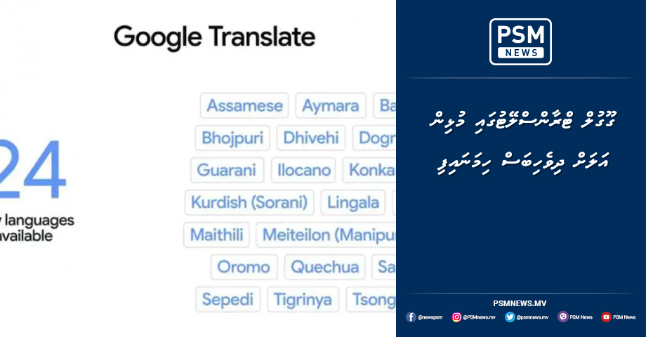 ގޫގުލް ޓްރާންސްލޭޓުގައި މުޅިން އަލަށް ދިވެހިބަސް ހިމަނައިފިއެވެ.