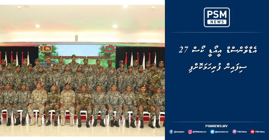 ނުރައްކާތެރި ތަކެތި ދެނެގަނެ، އެތަކެއްޗާމެދު ރައްކާތެރިގޮތުގައި ޢަމަލުކުރާނެ ގޮތް ދަސްކޮށްދޭ "އެޑްވާންސްޑް އެކްސްޕްލޯސިވް އޯޑްނަންސް ޑިސްޕޯސަލް (އީއޯޑީ) ކޯސް" 27 ސިފައިން ފުރިހަމަކޮށްފިއެވެ.