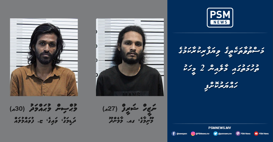 މަސްތުވާތަކެތި ގެންގުޅެ، ވިއްކާ، ވިޔަފާރިކުރާކަމުގެ ތުހުމަތުގައި ހައްޔަރުކޮށްފައިވަނީ ގއ.މާމެންދޫ، މޫނިމާގެ ނަޒީހު ޝަރީފް(27 އަހަރު) އަދި ޏ.ފުވައްމުލައް، ދަނޑިމަގު، ވައިގެ މުހުސިން މުޙައްމަދު (30 އަހަރު)އެވެ.