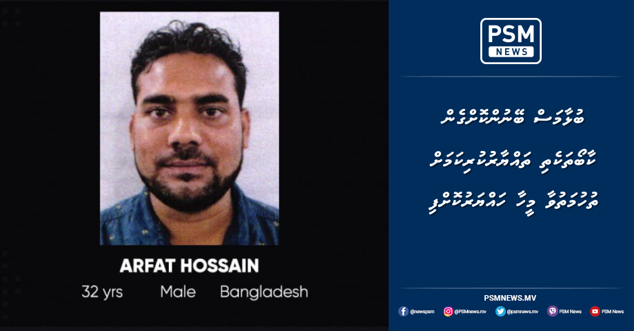 ބަންގްލަދޭޝްގެ ރައްޔިތެއްކަމަށްވާ އަރަފާތު ހުސައިން، އިމިގްރޭޝަނަށް ހާޒިރުވުމަށް އަންގާ އިޢުލާނު ކޮށްފައި ވަނިކޮށް އިމިގްރޭޝަން އިންޓެލިޖަންސަށް ލިބުނު މައުލޫމާތާ ގުޅިގެން، އިމިގްރޭޝަނުން ވަނީ @PoliceMv ގެ އެހީތެރިކަމާއެކު މި ބިދޭސީ ފަރާތް ހޯދައި އިމިގްރޭޝަން ބެލުމުގެ ދަށަށް… pic.twitter.com/xlStM4lwJj