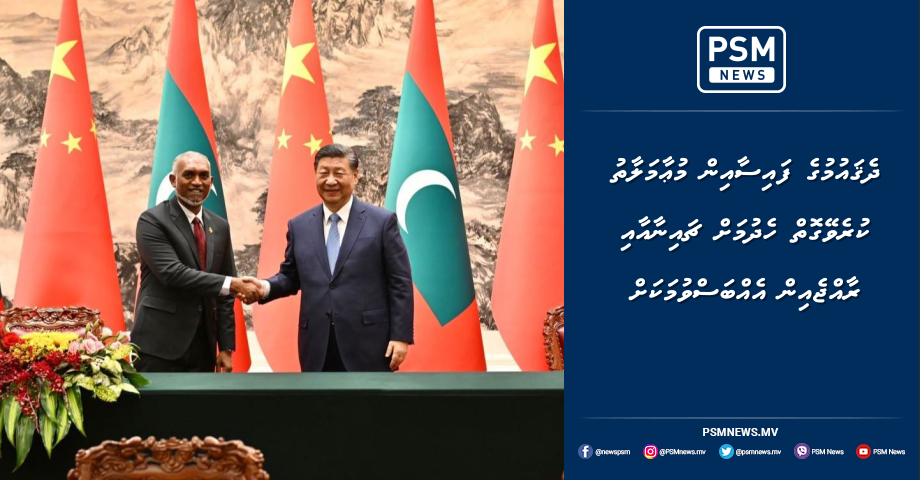 ރައީސުލްޖުމްހޫރިއްޔާ ޑރ. މުޙައްމަދު މުޢިއްޒު މިއަހަރުގެ ޖަނަވަރީ މަހު ޗައިނާއަށް ކުރެއްވި ފުރަމާނަ ދަތުރުފުޅުގެ ސަބަބުން ދިވެހިރާއްޖެއާ ޗައިނާއާ ދެމެދު އޮތް ގުޅުން އިތުރަށްވަނީ ބަދަހިވެގެންގޮސްފައެވެ. އަދި އެ ދަތުރުފުޅުގައި ޗައިނާގެ ރައީސް ޝީޖިންޕިންގއާއެކު ބޭއްވެވި މަޝްވަރާތަކުގައި ދިވެހިރާއްޖެއާއި ޗައިނާ އާ ދެމެދު އިސްތިރާޖީ އެއްބާރުލުމުގެ ގުޅުން އިތުރަށް ހަރުދަނާކޮށް ދެޤައުމުގެ މެދުގައި އިޤްތިޞާދީ އެއްބާރުލުން އިތުރަށް ފުޅާކުރުމަށްވަނީ އެއްބަސްވެވަޑައިގެންފައެވެ.