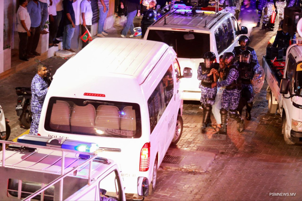 ނަމަވެސް އެކަމަށް އިޖާބަ ނުދީ އެއްވުމުގެ ބައިވެރިން ފުލުހުންނާ ދިމާލަށް ގަލާއި ފެންފުޅި އުކައި ފުލުހުންގެ އާލާތްތައް އަތުލަން މަސައްކަތްކޮށް އަދި ފުލުހުންގެ ވާޖިބު އަދާކުރުމަށް ހުރަސްއަޅާފައިވާކަމަށް ފުލުހުން ވިދާޅުވެއެވެ.