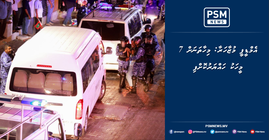އިދިކޮޅު އެމްޑީޕީން މިރޭ މާލޭގައި ކުރިއަށްގެންދާ މުޒާހަރާގެ ތެރެއިން މިހާތަނަށް 7 މީހަކު ހައްޔަރުކޮށްފައިވާކަމަށް ދިވެހި ފުލުހުންގެ ޚިދުމަތުން ވިދާޅުވެއްޖެއެވެ.