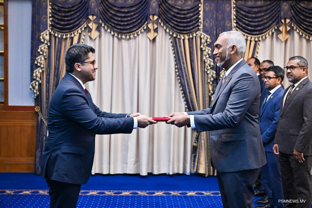 ބަންގްލަދޭޝްގެ އައު ސަފީރު، މަގާމުގެ ފަތްކޮޅު ރައީސުލްޖުމްހޫރިއްޔާ ޑރ. މުޙައްމަދު މުޢިއްޒަށް އަރުވައިފިއެވެ.