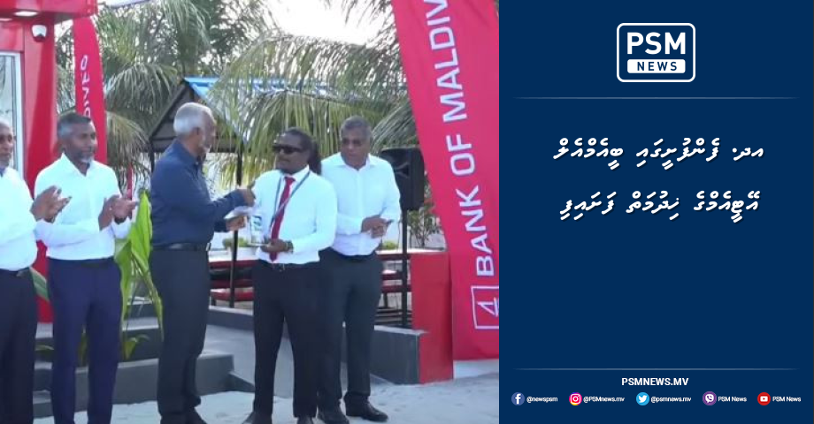 ފެންފުށީގައި ބީއެމްއެލް އޭޓީއެމްގެ ޚިދުމަތް ފަށާފައިވަނީ ރައީސުލްޖުމްހޫރިއްޔާ ޑރ. މުޙައްމަދު މުޢިއްޒު އދ.ގެ ރަށްރަށަށް މިހާރު ކުރައްވަމުންގެންދަވާ ދަތުރުފުޅުގެ ތެރެއިން ފެންފުއްޓަށް ކުރެއްވި ޒިޔާރަތުގައެވެ. މި ޚިދުމަތް ފަށްޓަވައިދެއްވުމަށްފަހު އެމަނިކުފާނު ވަނީ ހަނދާނީ ބޭންކު ކާޑެއް އެރަށު ކައުންސިލާ ހަވާލުކުރައްވާފައެވެ.