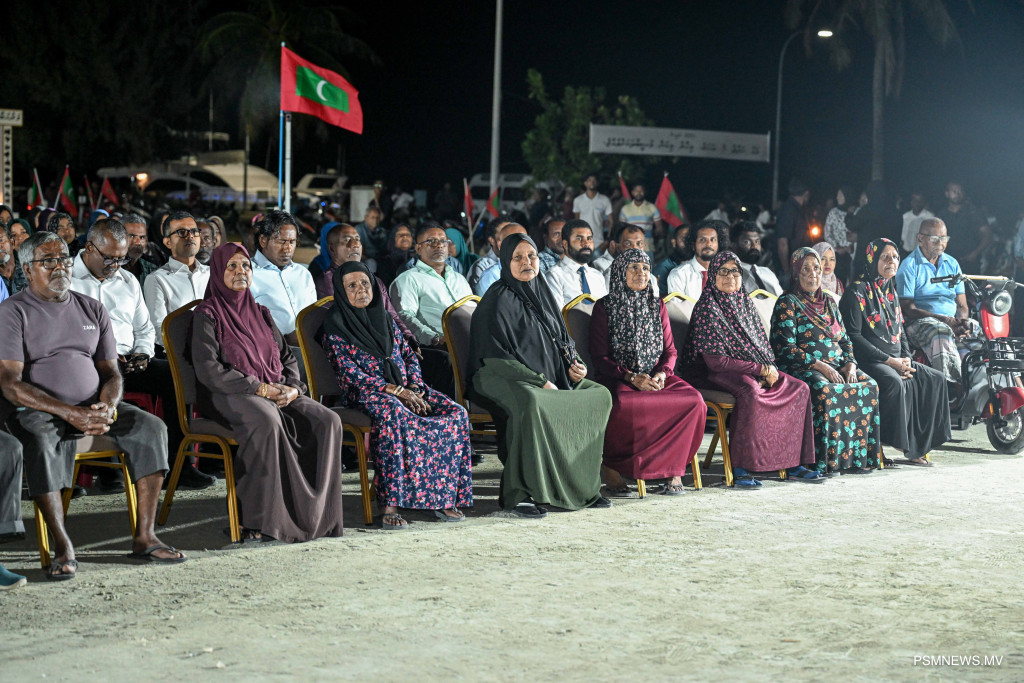 އދ. މާމިގިލީގައި ވާހަކަފުޅު ދައްކަވަމުން ރައީސުލްޖުމްހޫރިއްޔާ ޑރ. މުޙައްމަދު މުޢިއްޒު ވަނީ ބޭސް ލިބުމުގައި ދިމާވާ ދަތިތަކާއި ސިއްޙީ ނިޒާމުގައި ހުރި ބައެއް މައްސަލަތައް ހައްލުކުރުމަށް ކުރައްވާ މަސައްކަތްޕުޅަށް އަލިއަޅުއްވާލައްވާފައެވެ. އެގޮތުން ބޭސް ލިބުމުގެ ދަތިކަމަށް ހައްލު ހޯދުމަށް ކުންފުންޏެއް އުފައްދާފައިވާކަން ފާހަގަކުރައްވާ ރައީސް ވަނީ އެކަމަށް ދާއިމީ ޙައްލެއް ލިބޭނެކަމުގެ ޔަޤީންކަން ދެއްވާފައެވެ.