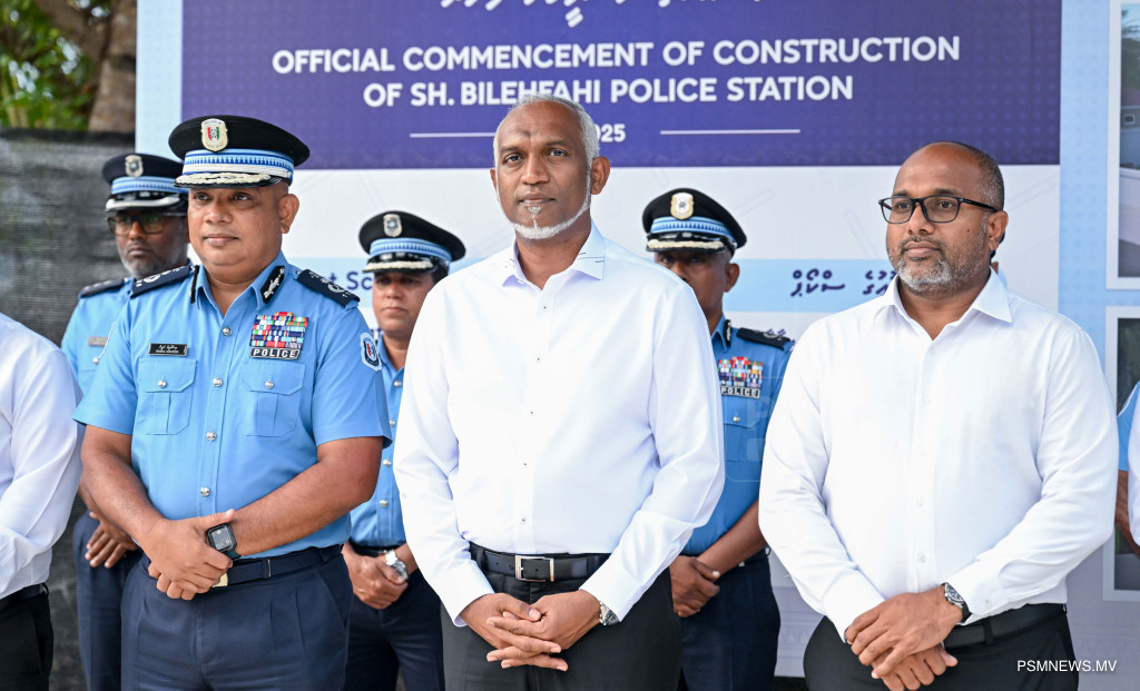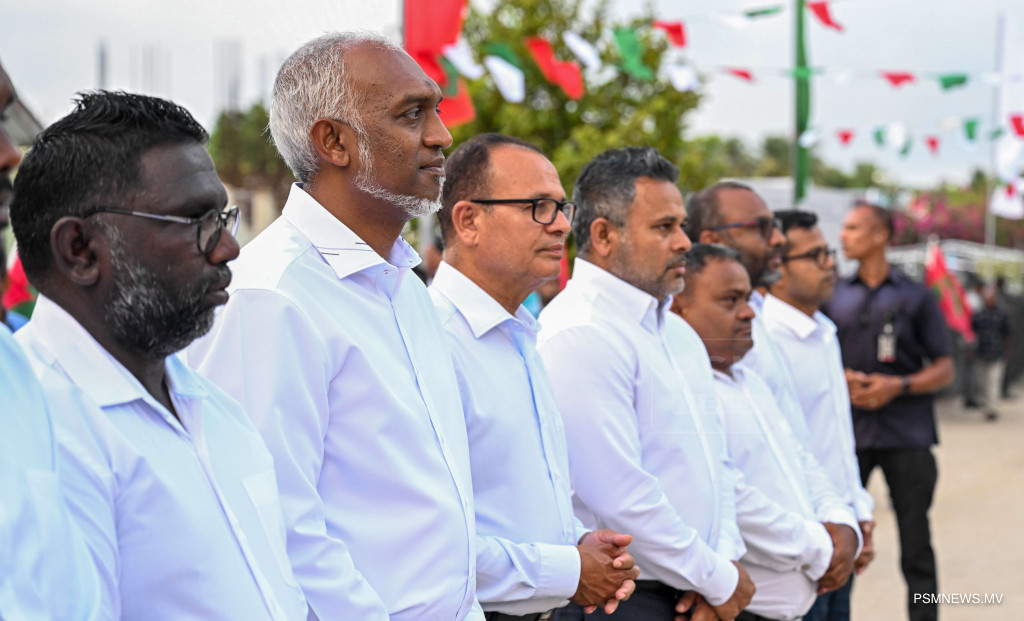 ށ. ބިލެތްފަހި ފުލުހުންގެ މަރުކަޒުގެ ބިންގާ އެޅުމުގެ ރަސްމިއްޔާތުގައި ރައީސުލްޖުމްހޫރިއްޔާ ޑރ. މުޙައްމަދު މުޢިއްޒު ބައިވެރިވެވަޑައިގަންނަވަނީ / ފޮޓޯ - ރައީސް އޮފީސް