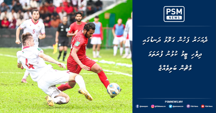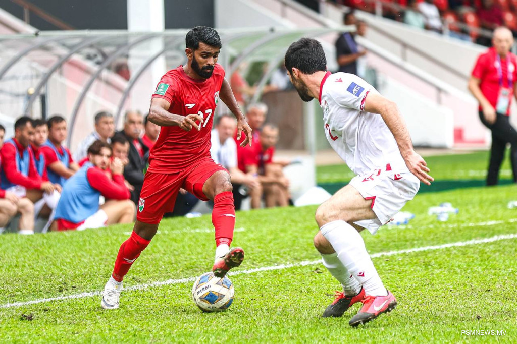އޭއެފްސީ އޭޝިއަން ކަޕް ކޮލިފައިންގެ ގްރޫޕް އޭގައި މިއަދު ހަވީރު ދިވެހިރާއްޖެ އާއި ތަޖިކިސްތާން ބައްދަލުކުރި މެޗުން ރާއްޖެ ބަލިވީ 3-0 ނެވެ.
