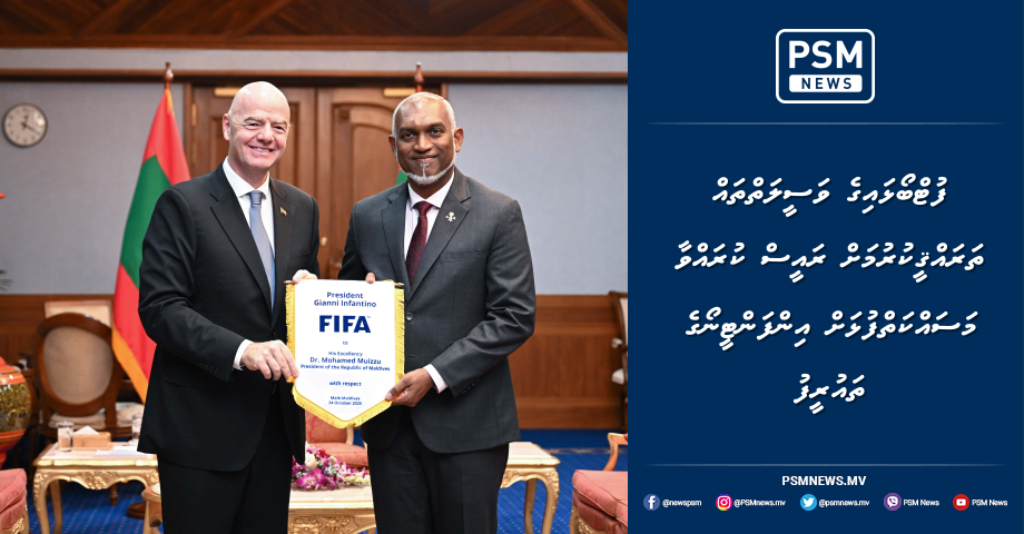 ރާއްޖޭގެ ރައީސްއާއި ފީފާގެ ރައީސްގެ މަޝްވަރާތަކަށްފަހު އިންފަންޓީނޯ ވިދާޅުވީ ރައީސް ޑރ. މުއިއްޒު އަދި އެމަނިކުފާނުގެ ސަރުކާރަކީ ދިވެހިންގެ ވަރުގަދަ ލޯތްބެއް އެކުޅިވަރަކަށް ދީފައިވާ ފުޓްބޯޅައަށް ވަރަށް ބޮޑަށް އެއްބާރުލުން ދެއްވާ ސަރުކާރެއް ކަމަށެވެ.
