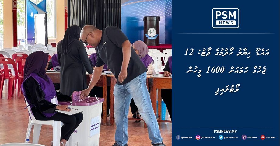 އިލެކްޝަންސް ކޮމިޝަނުން ވިދާޅުވީ ހެނދުނު 12 ޖެހުމާ ހަމައަށް 1،661 މީހަކު ވޯޓު ލާފައިވާ ކަމަށެވެ. އެއީ 789 އަންހެނުންނާއި 872 ފިރިހެނުންނެވެ. މި ވޯޓުގައި 9576 މީހަކަށް ވޯޓުލުމުގެ ޙައްޤު ލިބެއެވެ. ވުމާއެކު 12 ޖެހުމާ ހަމައަށް އަދި ވޯޓު ނުލައި 7915 މީހުން އެބަތިއްބެވެ.