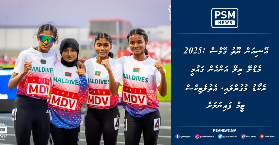 މިއަދު ސެމީ ފައިނަލް ހީޓް އެކެއްގައި ވާދަކޮށް ރާއްޖޭގެ މަރިޔަމް މައިހާއާއި އައިޝަތު ލުހްޔާ، ޝުއާ އަހުމަދު އަދި އަމަތުﷲ ބިންތު ޔާމީން ހިމެނޭ ރިލޭ ޓީމުން ރެކޯޑު ހެދީ ދެމިނެޓް، 31.25 ސިކުންތުން ރޭސް ނިންމައިގެންނެވެ. އޭޝިއަން ޔޫތު ގޭމްސްގައި ދުވުނު ޒުވާން ހަތަރު އެތުލީޓުން ރާއްޖޭގެ ރެކޯޑު މުގުރާލީ ބޮޑު ތަފާތަކުންވެސް މެއެވެ.