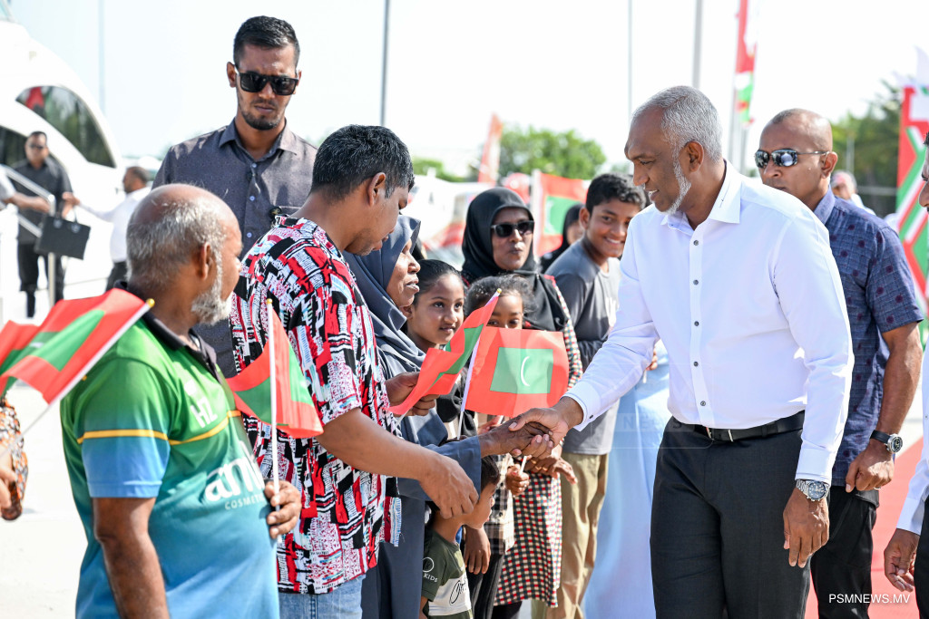 ފޮޓޯ: ރައީސުލްޖުމްހޫރިއްޔާ ޑރ. މުޙައްމަދު މުޢިއްޒު ޅ. އޮޅުވެލިފުއްޓަށް ވަޑައިގަތުން