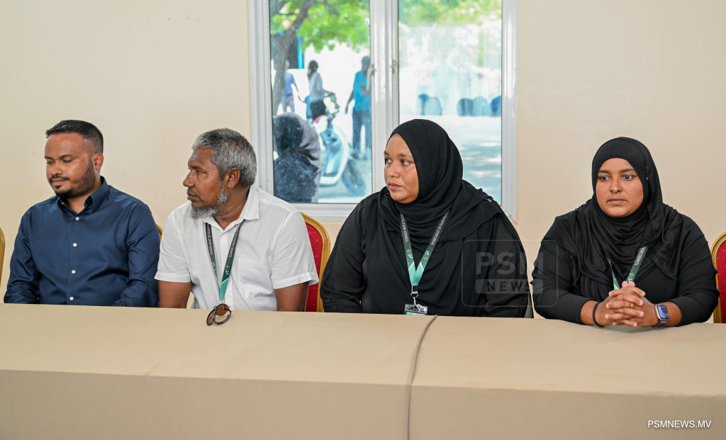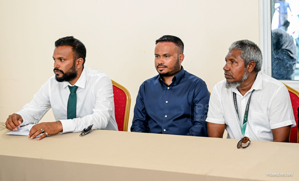 ޅ. އޮޅުވެލިފުށީގައި އިމާރާތްކުރާ ފިޓްނަސް އެންޑް ރެކްރިއޭޝަން ސެންޓަރުގެ ބިންގާ ކުޅިވަރާއި ހަށިހެޔޮކަމާ ބެހޭ ވަޒީރު ޢަބްދުﷲ ރާފިޢު އާއި މޯލްޑިވްސް އެއާޕޯޓްސް ކޮމްޕެނީ ލިމިޓެޑް (އެމްއޭސީއެލް) ގެ މެނޭޖިން ޑިރެކްޓަރ އިބްރާހީމް ޝަރީފް އަދި އެރަށު ކައުންސިލުގެ ރައީސް އަޅުއްވައިދެއްވަނީ / ފޮޓޯ: ރައީސް އޮފީސް