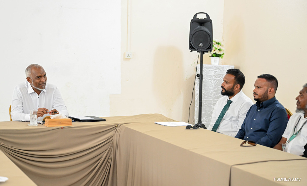 ރައީސުލްޖުމްހޫރިއްޔާ ޑރ. މުޙައްމަދު މުޢިއްޒު ޅ. އޮޅުވެލިފުށީ ރައްޔިތުންނާއި ބައްދަލުކުރެއްވުމަށް ބެއްވި ޖަލްސާގެ ތެރެއިން / ފޮޓޯ - ރައީސް އޮފީސް