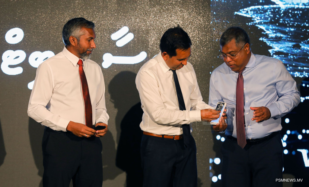 ބޭންކް އޮފް މޯލްޑިވްސް އިން މަލްޓިކަރަންސީ ޑިޖިޓަލް ވޮލެޓް ރައީސުލްޖުމްހޫރިއްޔާ ޑރ. މުޙައްމަދު މުޢިއްޒު އިފްތިތާހުކޮށްދެއްވަނީ / ފޮޓޯ: މުޙައްމަދު ވަޙީދު، ޕީއެސްއެމް ނިއުސް