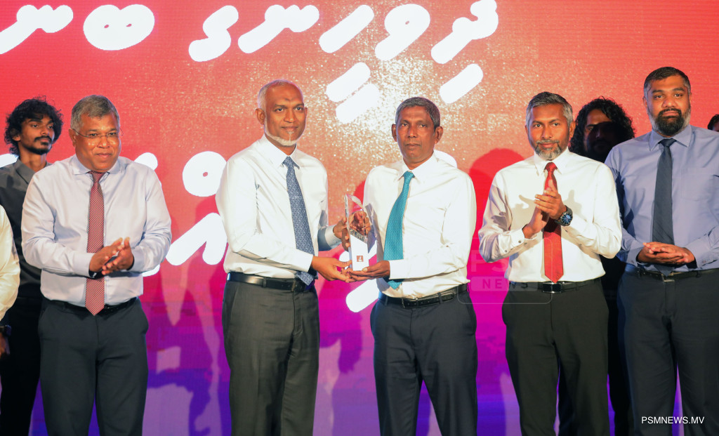 ބޭންކް އޮފް މޯލްޑިވްސްއިން "ދިވެހީންގެ ބޭންކް – މުޅި ރާއްޖެއަށް" ކެމްޕޭނު ރައީސުލްޖުމްހޫރިއްޔާ ޑރ. މުޙައްމަދު މުޢިއްޒު އިފްތިތާހުކޮށްދެއްވަނީ / ފޮޓޯ: މުޙައްމަދު ވަޙީދު، ޕީއެސްއެމް ނިއުސް