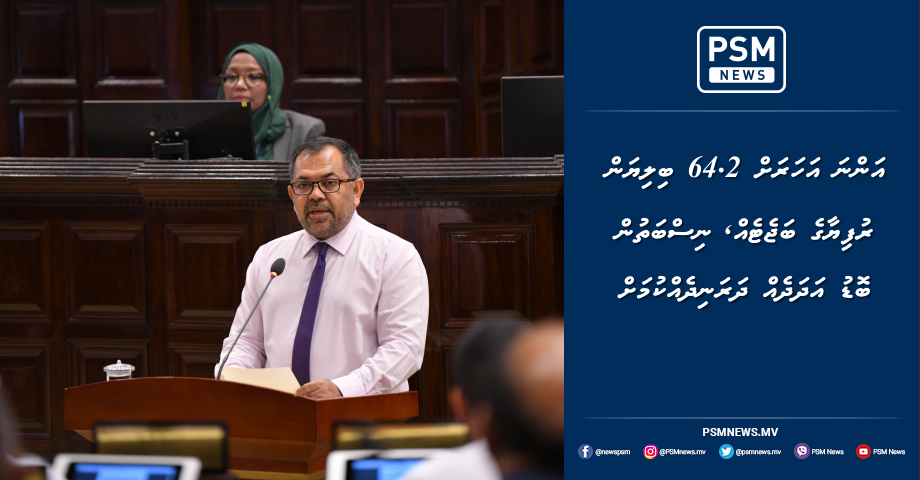 އަންނަ އަހަރަށް ލަފާކޮށް ސަރުކާރުން 64.2 ބިލިޔަން ރުފިޔާގެ ބަޖެޓެއް ރައްޔިތުންގެ މަޖިލީހަށް ހުށަހަޅައިފިއެވެ. 2026ވަނަ އަހަރަށް ދައުލަތުން ލަފާކުރާ ބަޖެޓް މަޖިލީހަށް ހުށަހެޅުއްވީ، މާލީ ވަޒީރު މޫސާ ޒަމީރެވެ.