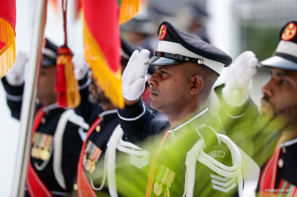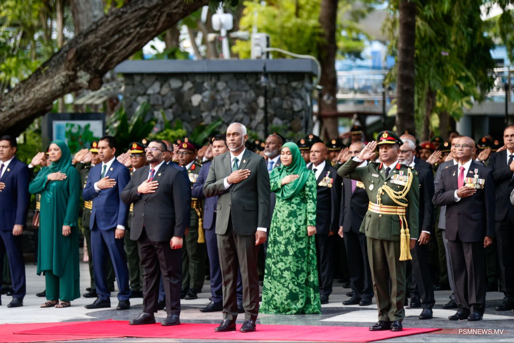 3 ނޮވެންބަރުގެ ހަނދާނީ ބިނާގައި ދިދަ ޖެހުމާއި ގާޑް މައުންޓްކުރުން/ ފޮޓޯ: އަލީ ނަސީރު، ޕީއެސްއެމް ނިއުސް