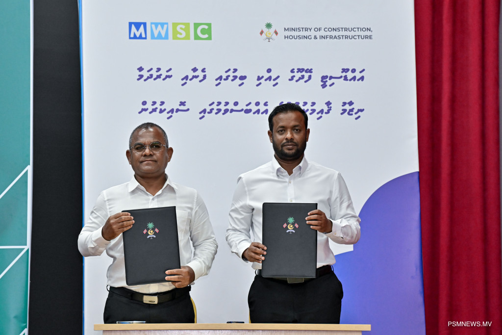 މިކަމާ ބެހޭ އެއްބަސްވުމުގައި ގެދޮރުވެރިކަމާއި ބިނާރާ ބެހޭ ވުޒާރާގެ ފަރާތުން ސޮއިކުރެއްވީ، ވަޒީރު ޑރ. ޢަބްދުﷲ މުއްޠަލިބެވެ. މާލޭ ވޯޓަރ އެންޑް ސުވަރޭޖް ކޮމްޕެނީ، އެމްޑަބްލިއުއެސްސީގެ ފަރާތުން ސޮއިކުރެއްވީ، މެނޭޖިންގ ޑިރެކްޓަރ ޢަބްދުލް މަތީން މުޙައްމަދެވެ.