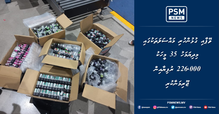 ވޭޕާއި ގުޅުންހުރި މައްސަލަތަކުގައި މިދިޔަމަހު 35 މީހަކު 226،000 ރުފިޔާއިން ޖޫރިމަނާކޮށްފައިވާކަމަށް ދިވެހި ފުލުހުންގެ ޚިދުމަތުން ވިދާޅުވެއްޖެއެވެ.