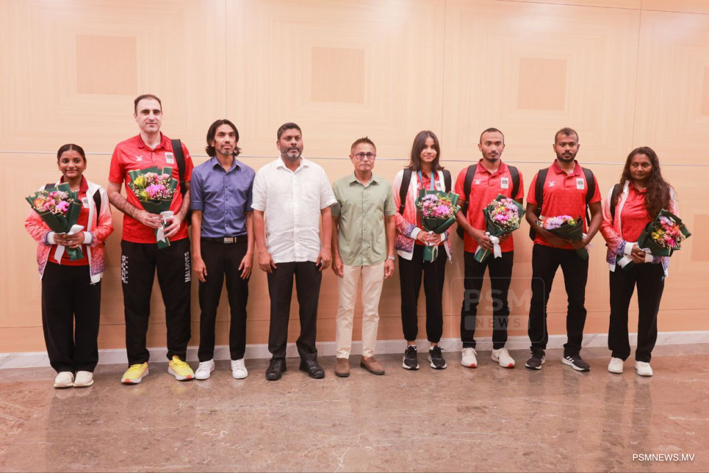 ޓީޓީ ޓީމު މިއަދު ހެނދުނު ރާއްޖެ އައިސްފައިވާއިރު ވެލާނާ އިންޓަނޭޝަނަލް އެއަރޕޯޓުން ޓީމަށް މަރުހަބާ ދެންނެވީ ކުޅިވަރާއި ހަށިހެޔޮކަމާބެހޭ ވަޒީރު ޢަބްދުﷲ ރާފިޢުއާއި ސްޓޭޓް މިނިސްޓަރ ޢަބްދުއްރައްޒާޤް އިބްރާހީމާއި މޯލްޑިވްސް އޮލިމްޕިކް ކޮމިޓީގެ ނައިބު ރައީސް އަޙްމަދު މުންތަގިމާއި ޓޭބަލް ޓެނިސް އެސޯސިއޭޝަންގެ ރައީސް ޢަލީ ރަޝީދެވެ.