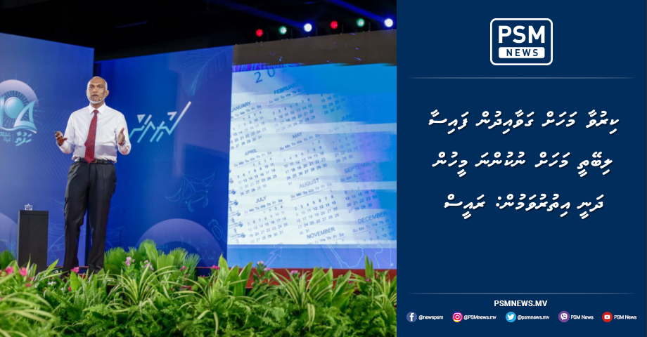 ސަރުކާރުން ވޭތުވެދިޔަ 2 އަހަރުގެ ތެރޭގައި ކުރައްވާފައިވާ މުހިންމު މަސައްކަތްތަކުގެ މައްޗަށް އަލިއަޅުއްވާލައްވާ ވާހަކަފުޅު ދައްކަވަމުން ރައީސުލްޖުމްހޫރިއްޔާ ޑރ.މުޙައްމަދު މުޢިއްޒު ވިދާޅުވީ، މި ސަރުކާރު ވެރިކަމާ ހަވާލުވިއިރު މަސްވެރިކަމުގެ ދާއިރާ އޮތީ ނިކަމެތިކޮށްލާފައިިކަމަށެވެ. އެހެންނަމަވެސް، މި ސަރުކާރުން މަސްވެރިކަމުގެ ސިނާއަތް ކުރިއަރުވަމުން ހާއްސަ އިސްކަމެއް ދެއްވިކަމަށް ރައީސް ވިދާޅުވިއެވެ.