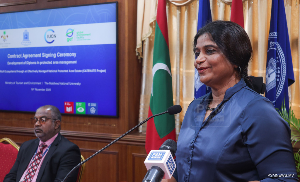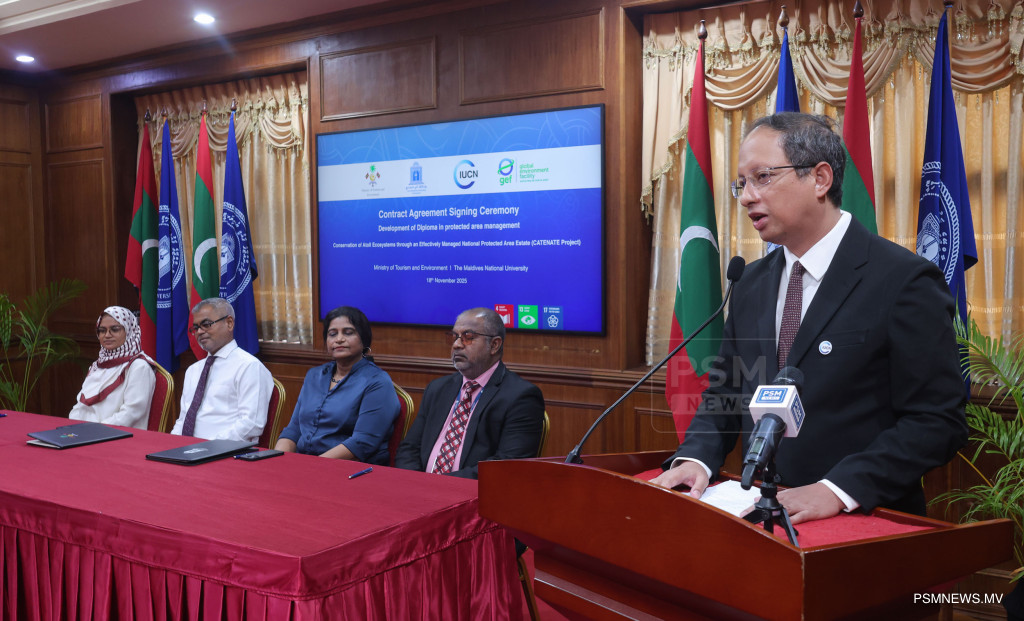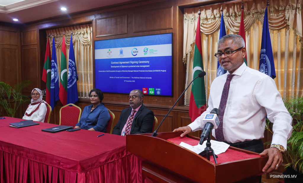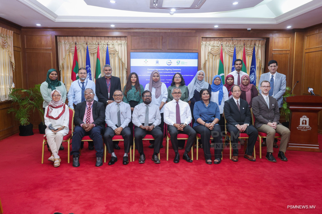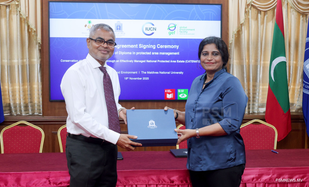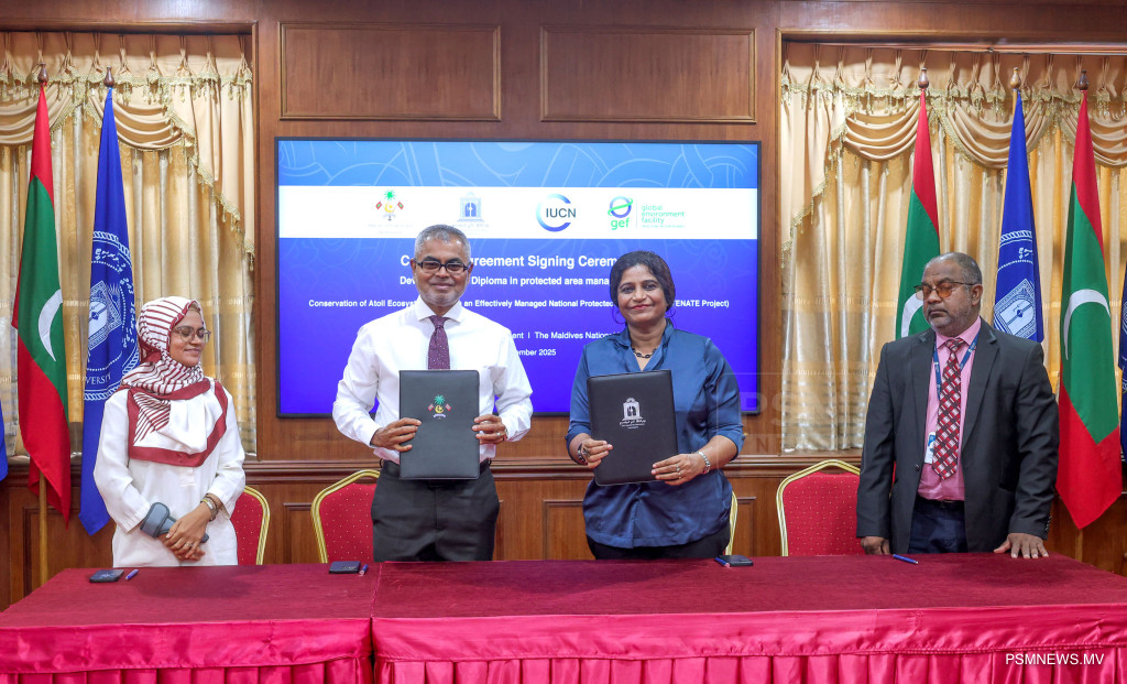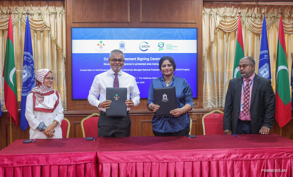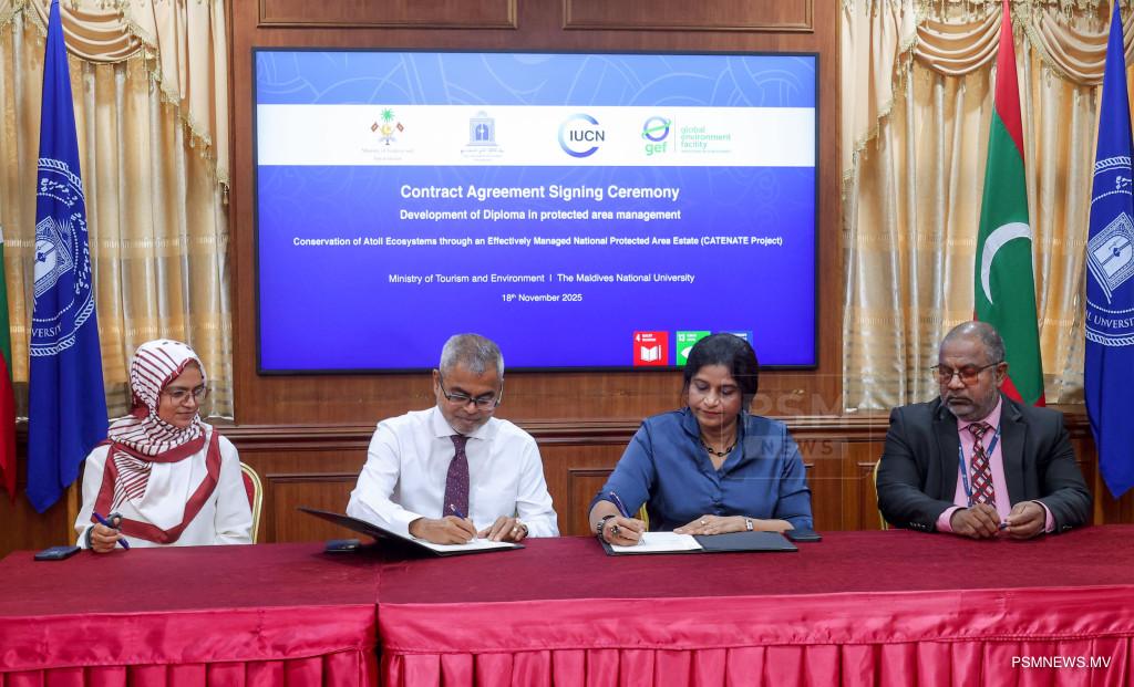 ފޮޓޯ: ޙިމާޔަތްކޮށްފައިވާ ސަރަހައްދުތައް ބެލެހެއްޓުމުގެ ޑިޕްލޮމާ ކޯހެއް ފަރުމާކުރުމުގެ އެއްބަސްވުމުގައި ސޮއިކުރުން / ފޮޓޯ: މުޙައްމަދު ވަޙީދު، ޕީއެސްއެމް ނިއުސް