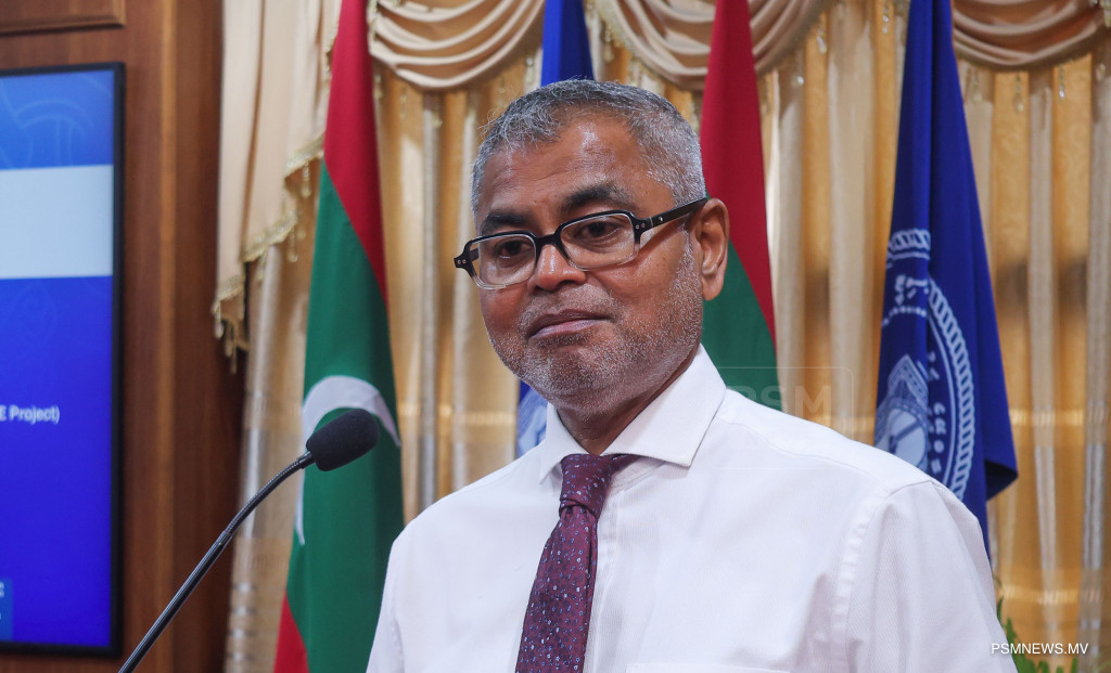 ރާއްޖޭގެ ޙިމާޔަތްކޮށްފައިވާ ސަރަހައްދުތައް ބެލެއްޓުމާގުޅޭ ޑިޕްލޮމާ ކޯހެއް ފަރުމާކުރުމުގެ އެއްބަސްވުމެއްގައި ސޮއިކުރުމުގެ ރަސްމިއްޔާތުގައި ތިމާވެއްޓައި ބެހޭ ވަޒީރު ޠާރިޤު އިބްރާހީމް ވާހަކަފުޅު ދައްކަވަނީ / ފޮޓޯ: މުޙައްމަދު ވަޙީދު، ޕީއެސްއެމް ނިއުސް