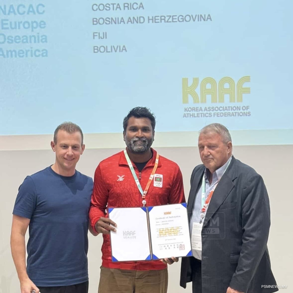 ގައުމީ އެތުލެޓިކްސް ޓީމުގެ ކޯޗު ހުސެއިން މި ކޯސް ފުރިހަމަކުރީ 11-22 ނޮވެމްބަރަށް ސައުތު ކޮރެއާގެ ޔިޗޮން-ގަންގައި ހުންނަ ކާފް އެތުލެޓިކްސް އެޑިއުކޭޝަން އެންޑް ޓްރެއިނިން ސެންޓަރުގައެވެ.