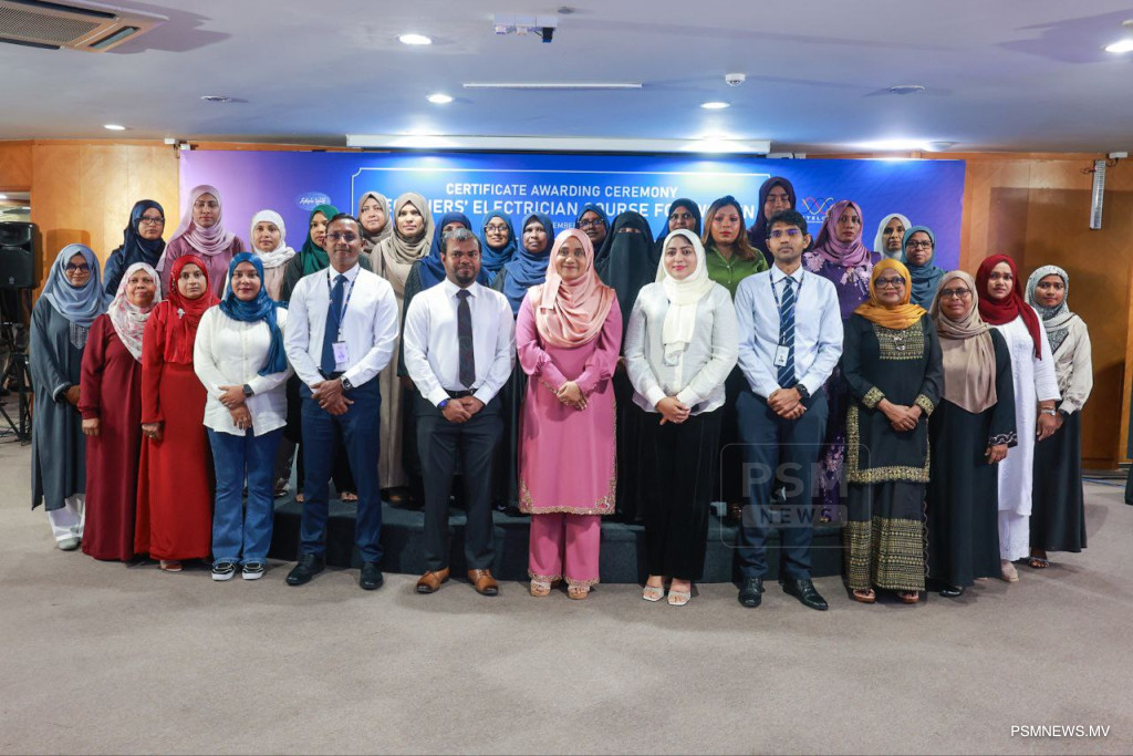 ސްޓެލްކޯއިން ކުރިއަށްގެންދިޔަ ފަށާ ފެންވަރުގެ ކަރަންޓު މަސައްކަތުގެ ކޯސް “ބިގިނަރސް އިލެކްޓްރިކް ކޯސް ފޯ ވިމަން” 116 އަންހެނުން ފުރިހަމަކޮށްފިއެވެ. މި ރަސްމިއްޔާތު ޝަރަފުވެރިކޮށްދެއްވާ ބައިވެރިންނަށް ސެޓްފިކެޓް ހަވާލުކޮށްދެއްވީ ރައީސުލްޖުމްހޫރިއްޔާގެ އަނބިކަނބަލުން ސާޖިދާ މުޙައްމަދުއެވެ.