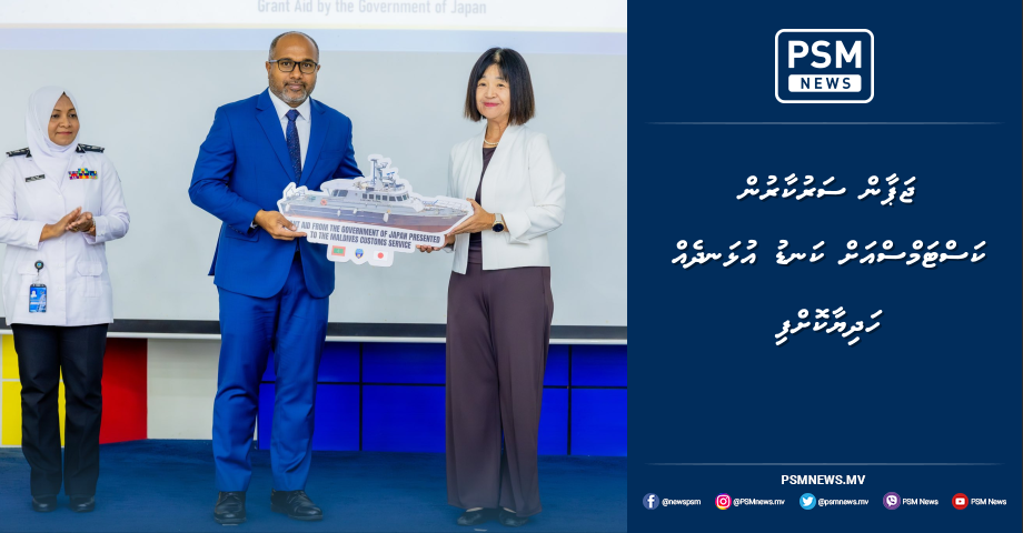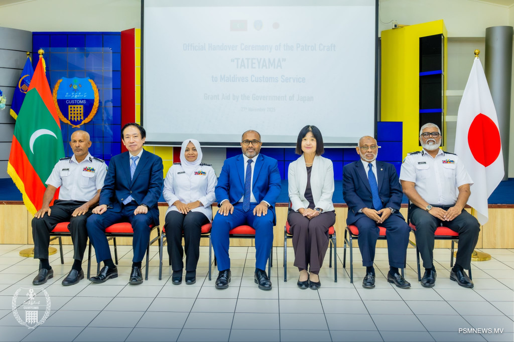 ރާއްޖޭގެ ބައިނަލްއަޤްވާމީ ބަނދަރުތައް ބެލެހެއްޓުން ހަރުދަނާ ކުރުމާއި ސަރވެއިލެންސްގެ މަސައްކަތަށް 82 ފޫޓުގެ ޕެޓްރޯލް ވެސަލްއެއް ޖަޕާނު ސަރުކާރުން މޯލްޑިވްސް ކަސްޓަމްސް ސަރވިސްއަށް ހަދިޔާކޮށްފިއެވެ.