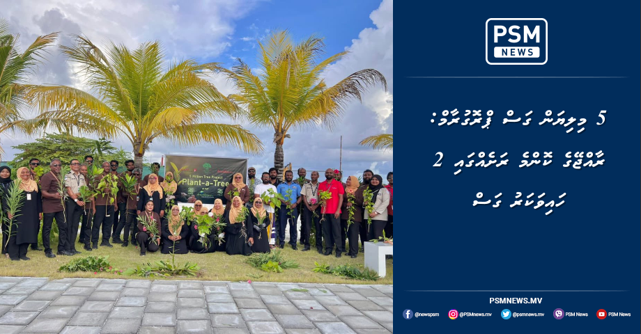 5 މިލިޔަން ގަސް އިންދުމުގެ ޕްރޮގްރާމް ފެށީ، ރާއްޖެއިން ނެތެމުންދާ ގަސްތައް އަލުން އާލާކޮށް، ޤައުމުގެ ފެހިކަން އިތުރުކޮށް މާޙައުލީ ނިޒާމު ދެމެހެއްޓުމުގެ މަޤުޞަދުގައެވެ. މި ޕްރޮގުރާމް ރަސްމީކޮށް ފެށީ، 2024 ވަނަ އަހަރުގެ ދުނިޔޭގެ ތިމާވެށީގެ ދުވަހުއެވެ. އެއީ، ޖޫން މަހުގެ 5 ވަނަ ދުވަހެވެ. މި ޕްރޮގުރާމްގެ ދަށުން މިހާތަނަށް 819000 ގަސް ވަނީ އިންދާފައެވެ.