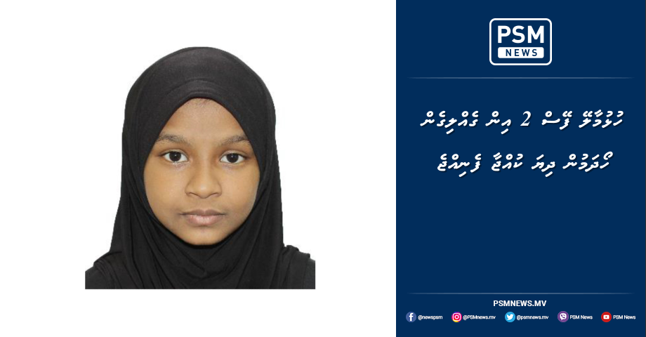 ފުލުހުން ވިދާޅުވީ، އުމުރުން 14 އަހަރުގެ ރ.ދުވާފަރު، ސިކްސް ސެންސް ޝިބާ ރަޝީދު ގެއްލިގެން ރިޕޯޓުކުރި ކަމަށެވެ. އެގޮތުން އެކުއްޖާ މިމަހުގެ 28 ވަނަ ދުވަހުގެ ފަތިހު 05:55 ގައި ގެއިން ނުކުމެގެން ދިޔަގޮތަށް ވީނުވީއެއް ނޭނގި ގެއްލިފައިވާކަމަށް ޢާއިލާއިން ރިޕޯޓުކޮށްފައިވާކަމަށް ފުލުހުން ވިދާޅުވިއެވެ.