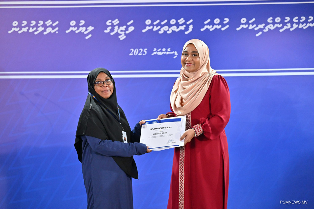 މިމީހުންނަށް ވަޒީފާގެ ލިޔުން ހަވާލުކޮށްފައިވަނީ އެކަމަށްޓަކައި މިއަދު ސްޓެލްކޯގެ އޮޑިޓޯރިއަމްގައި ބޭއްވި ރަސްމިއްޔާތެއްގައި ރައީސުލްޖުމްހޫރިއްޔާގެ އަނބިކަނބަލުން ސާޖިދާ މުޙައްމަދުއެވެ.