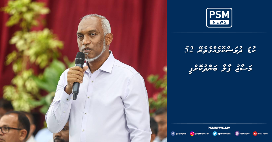 ރައްޔިތުންގެ ކަންބޮޑުވުންތަކާއެކު މަސާޖު ޕާލާ ތަންތަން ބަންދުކުރުމުގެ މަސައްކަތުގެ ދަށުން ކުޑަދުވަސްކޮޅެއްގެ ތެރޭގައި 52 މަސާޖްޕާލާ ބަންދުކުރެވިފައިވާކަމަށް ރައީސުލްޖުމްހޫރިއްޔާ ޑރ. މުޙައްމަދު މުޢިއްޒު ވިދާޅުވެއްޖެއެވެ.