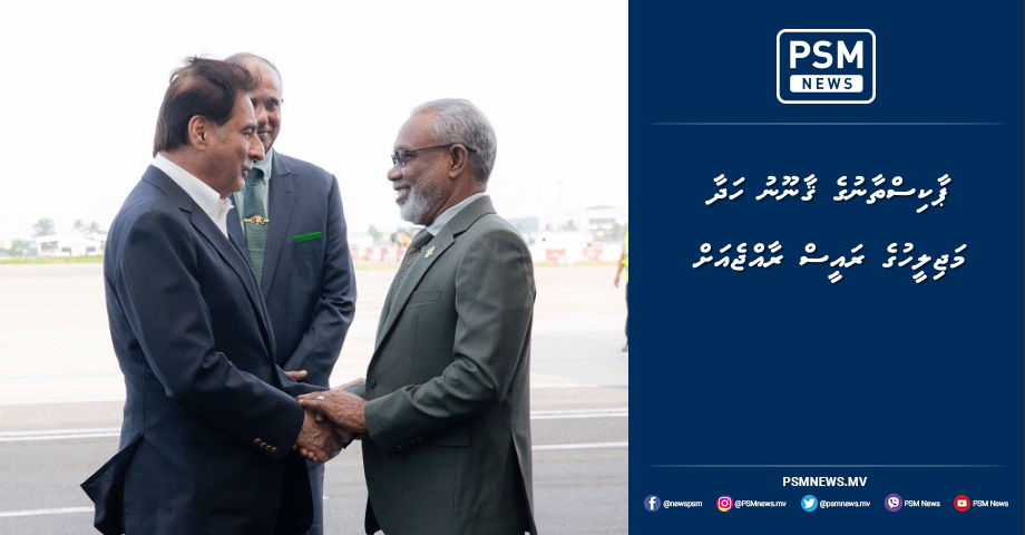 ޕާކިސްތާނުގެ ޤާނޫނު ހަދާ މަޖިލީހުގެ ރައީސް، ސަރްދާރް އަޔާޒް ޞާދިޤަށް ވެލާނާ އިންޓަރ ނޭޝަނަލް އެއަރޕޯޓުން މަރުޙަބާ ވިދާޅުވީ ރައްޔިތުންގެ މަޖިލީހުގެ ރައީސް ޢަބްދުއްރަޙީމް ޢަބްދުﷲއެވެ. މިއީ އެމަނިކުފާނުގެ ދަޢުވަތަކަށް ޕާކިސްތާނުގެ ޤާނޫނު ހަދާ މަޖިލީހުގެ ރައީސް ކުރައްވާ 3 ދުވަހުގެ ދަތުރުފުޅެކެވެ.