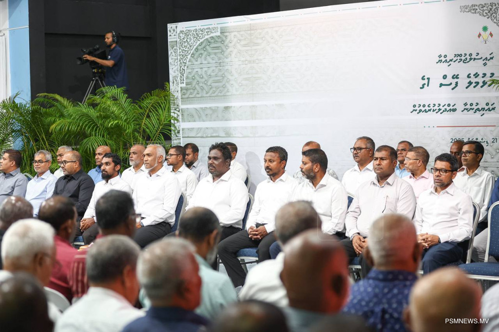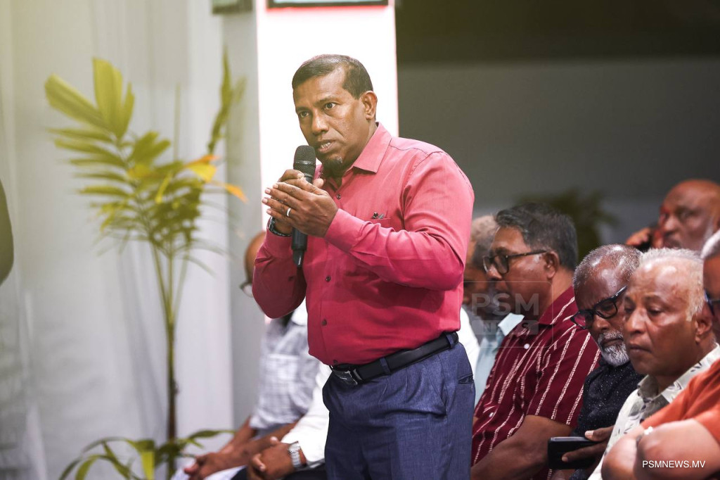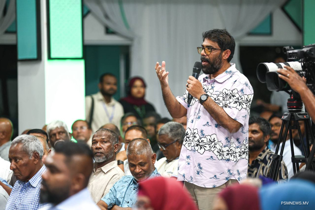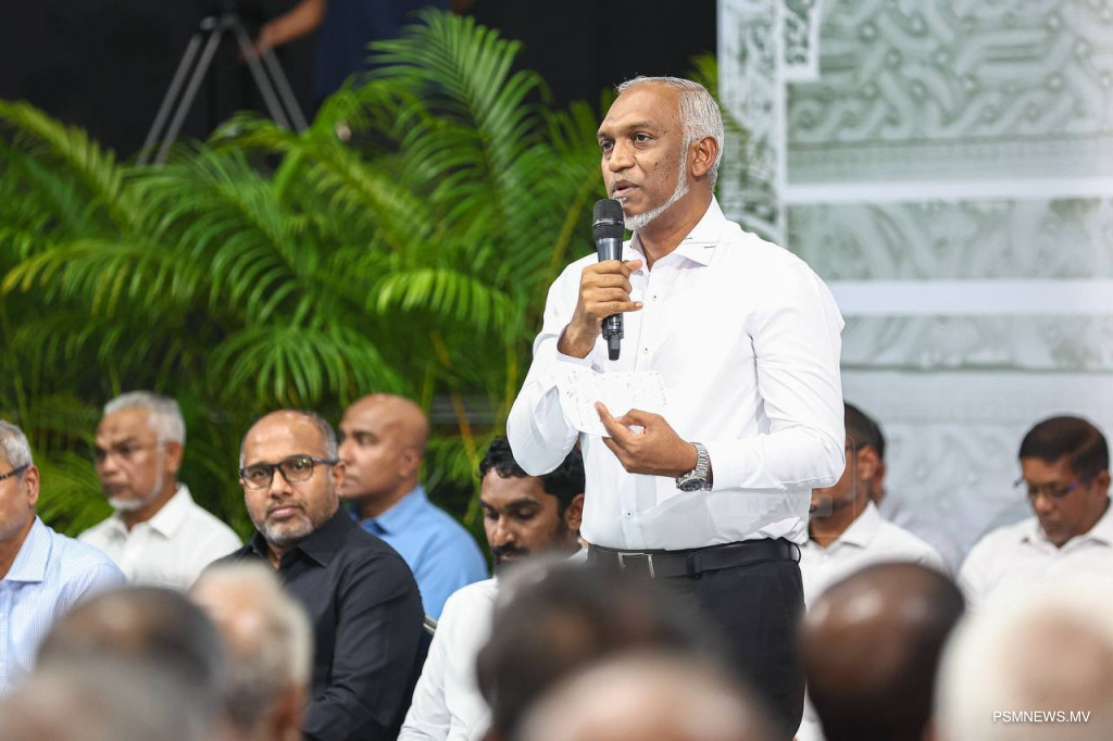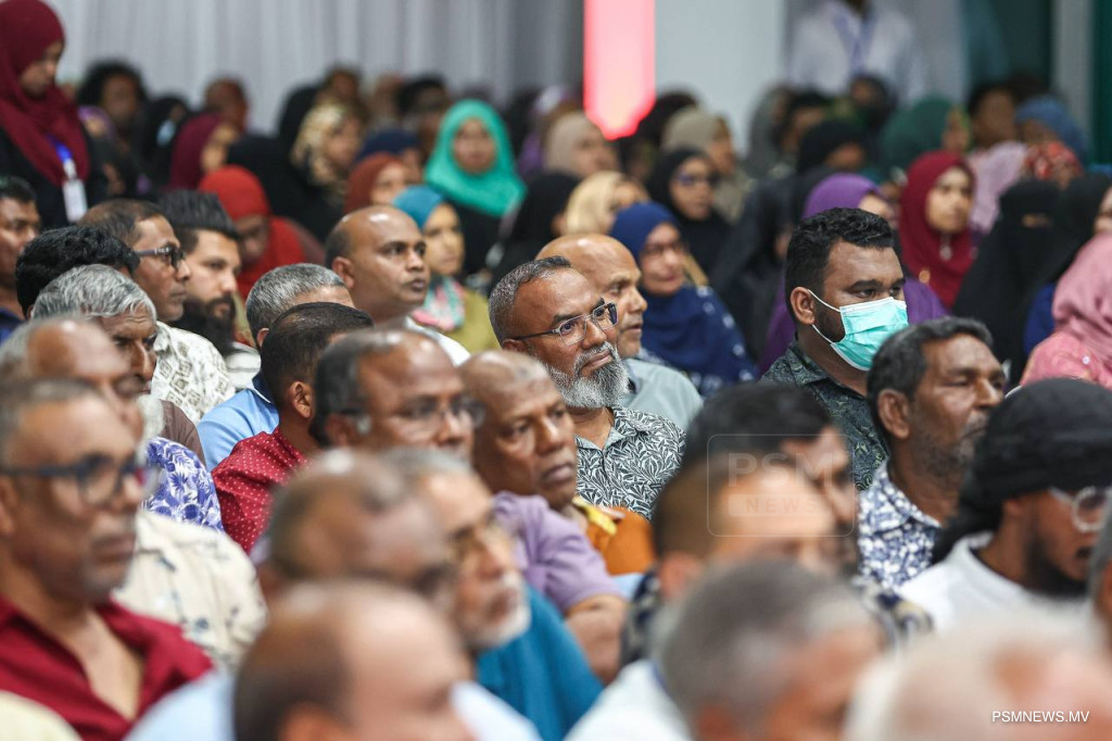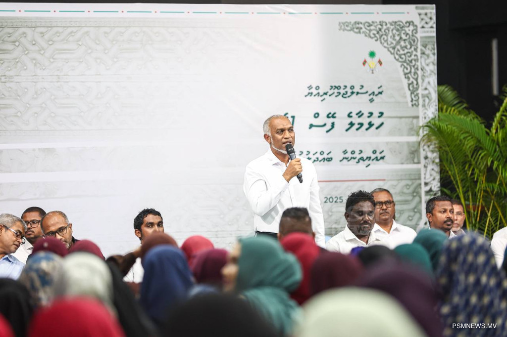 ރައީސުލްޖުމްހޫރިއްޔާ ޑރ. މުޙައްމަދު މުޢިއްޒު ހުޅުމާލެ ފޭސް 1ގައި ދިރިއުޅޭ ރައްޔިތުންނާއެކު ބޭއްވެވި ބައްދަލުކުރެއްވުމުގެ ތެރެއިން، ފޮޓޯ: ޖަލްވާން ޖަމީލް، ޕީއެސްއެމް ނިއުސް