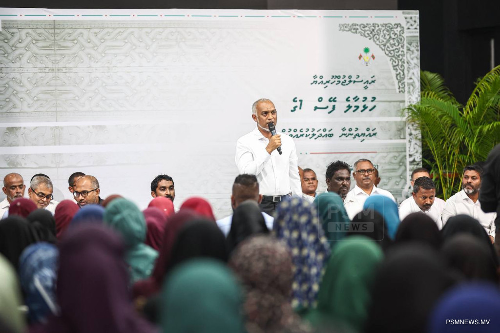 ރައީސުލްޖުމްހޫރިއްޔާ ޑރ. މުޙައްމަދު މުޢިއްޒު ހުޅުމާލެ ފޭސް 1ގައި ދިރިއުޅޭ ރައްޔިތުންނާ ބައްދަލުކުރެއްވުމުގެ ތެރެއިން، ފޮޓޯ: ޖަލްވާން ޖަމީލް، ޕީއެސްއެމް ނިއުސް