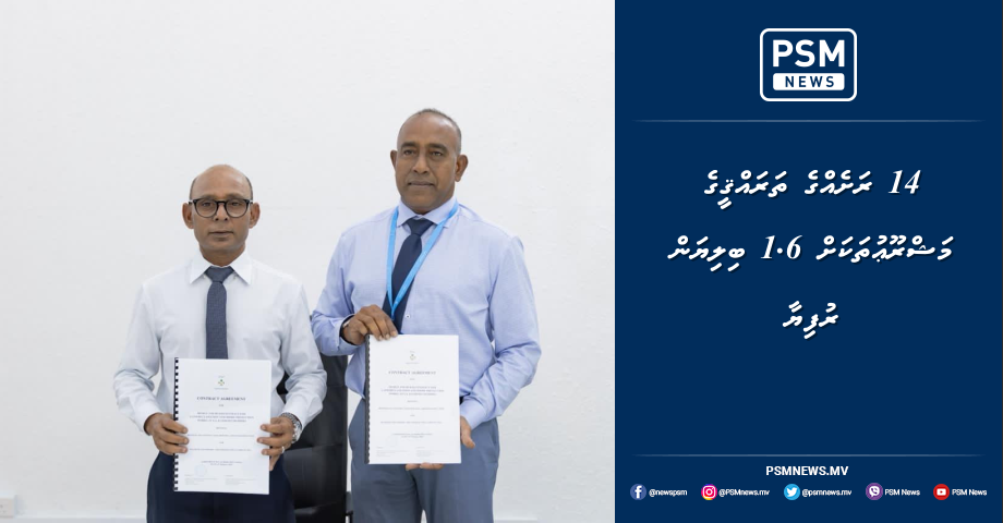 14 ރަށެއްގައި ކުރިއަށްގެންދާ ޢުމްރާނީ ތަރައްޤީގެ 14 މަޝްރޫޢެއްގެ މަސައްކަތް އިމާރާތްކުރުމާއި ގެދޮރުވެރިކަމާއި ބިނާރާ ބެހޭ ވުޒާރާއިން އެމްޓީސީސީއާއި ހަވާލުކޮށްފިއެވެ.