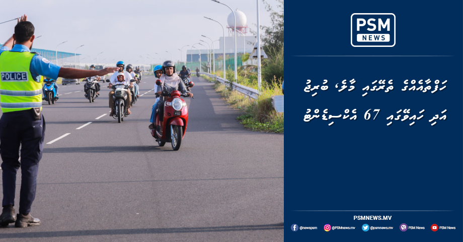 މިމަހުގެ 4 ވަނަ ދުވަހުން ފެށިގެން 10 ވަނަ ދުވަހާއި ހަމައަށް މާލެއާއި ސިނަމާލެ ބުރިޖު އަދި ހައިވޭގައި ޖުމްލަ 67 އެކްސިޑެންޓް ހިނގާފައިވާކަމަށް ފުލުހުން ވިދާޅުވެއްޖެއެވެ.