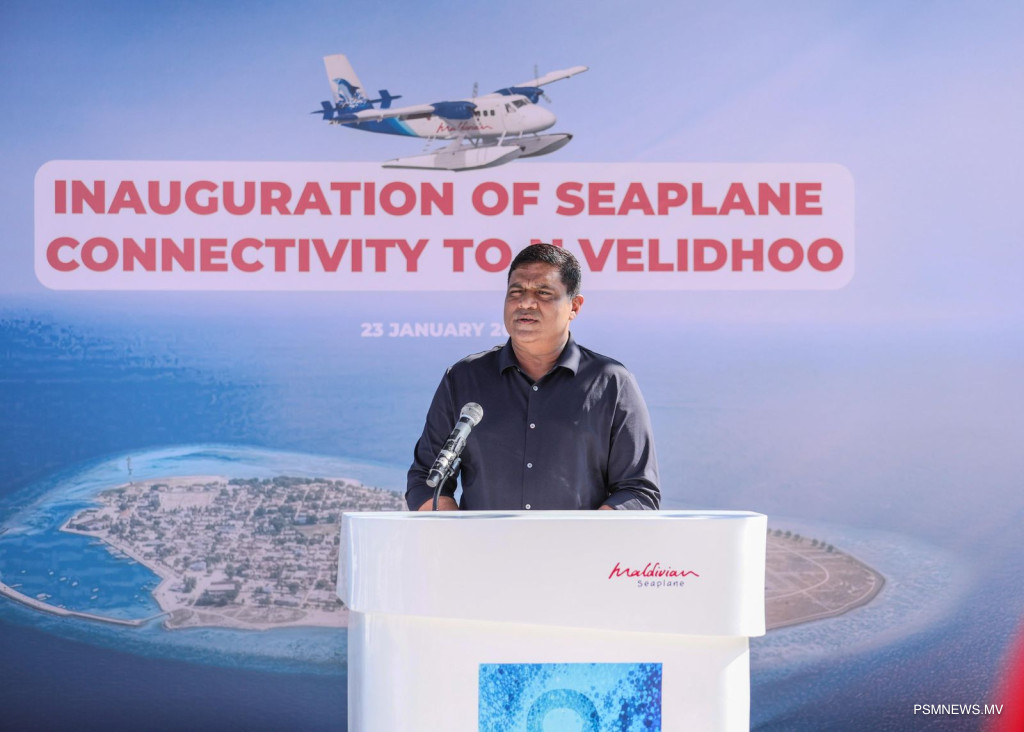 ވަޒީރު މިހެން ވިދާޅުވީ ނ. ވެލިދުއަށް މޯލްޑިވިއަންގެ ސީޕްލޭންގެ ޙިދުމަތް ފެށުމަށް ބޭއްވި ރަސްމިއްޔާތުގައި ވާހަކަދައްކަވަމުންނެއެވެ.
