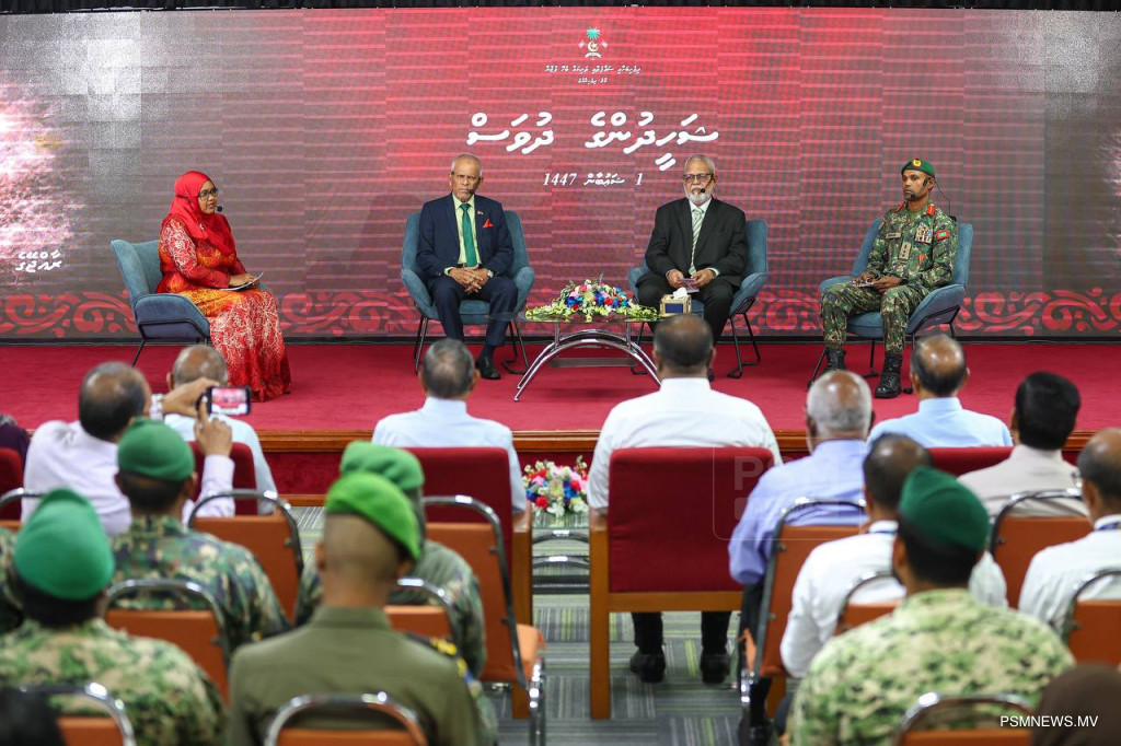 1447 ވަނަ އަހަރުގެ ޝަހީދުންގެ ދުވަހުގެ މުނާސަބަތުގައި ބޭއްވި ޕެނަލް ޑިސްކަޝަންގެ ތެރެއިން، ފޮޓޯ: ޖަލްވާން ޖަމީލް، ޕީއެސްއެމް ނިއުސް