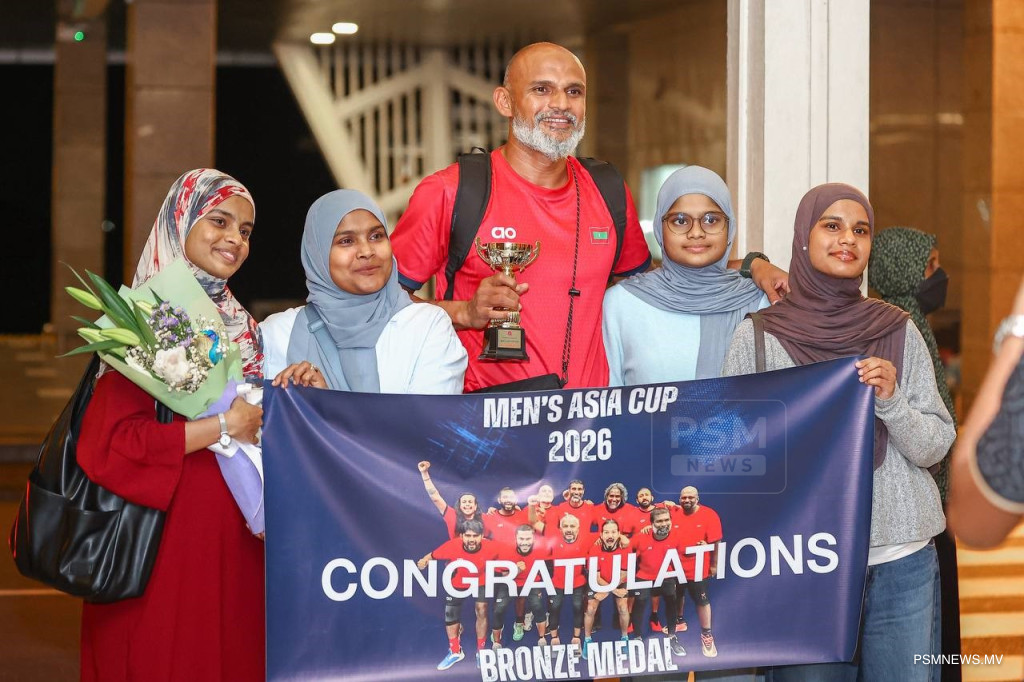 މެންސް އޭޝިއާ ކަޕް 2026 ގެ ލޯ މެޑަލް ހާސިލްކޮށް އެނބުރި ޤައުމަށް އައި ރާއްޖޭގެ ފިރިހެން ޤައުމީ ނެޓްބޯޅަ ޓީމަށް ހޫނު މަރުޙަބާއެއް ކިޔައިފިއެވެ.