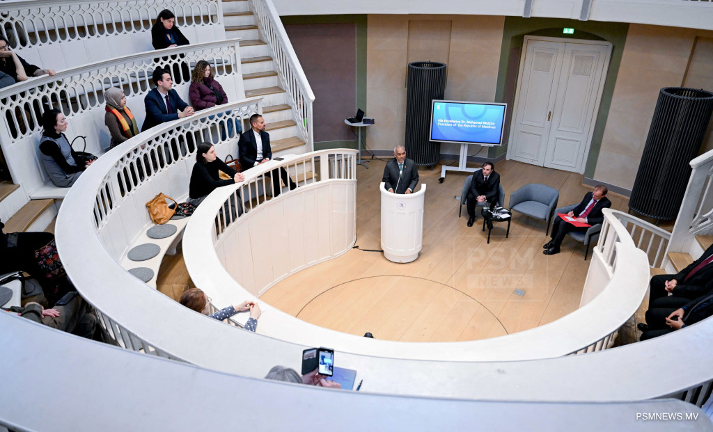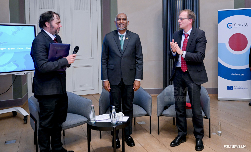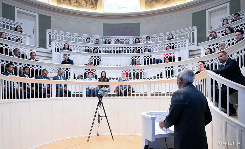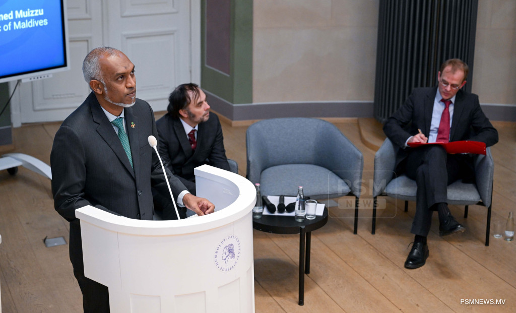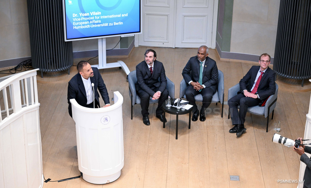 ރައީސުލްޖުމްހޫރިއްޔާ ޑރ. މުޙައްމަދު މުޢިއްޒު ބަރލިންގެ ހުމްބޯލްޑްޓް ޔުނިވަރސިޓީއަށް ޒިޔާރަތްކުރައްވައި ދެއްވި ޚާއްޞަ ތަޤުރީރުގެ ތެރެއިން / ފޮޓޯ:- ރައީސް އޮފީސް