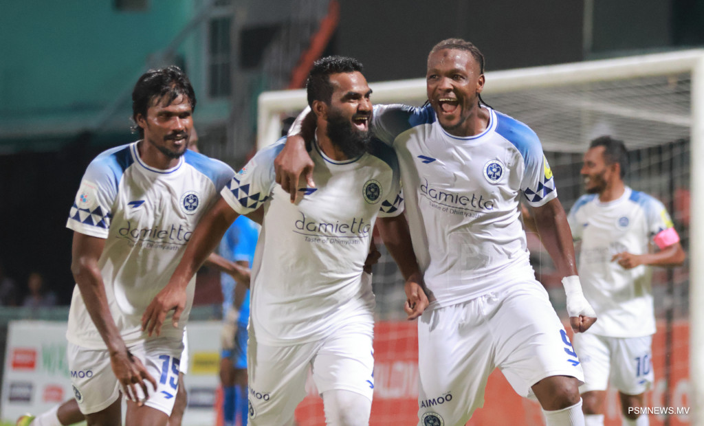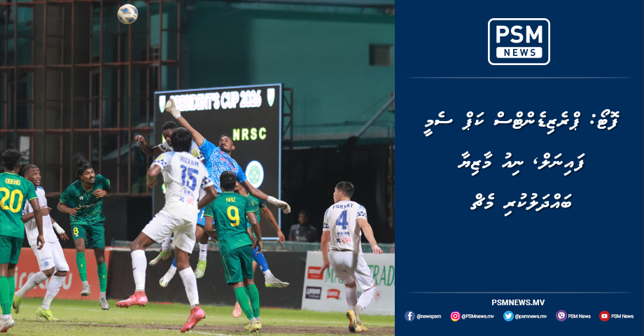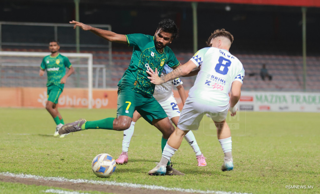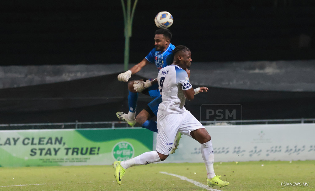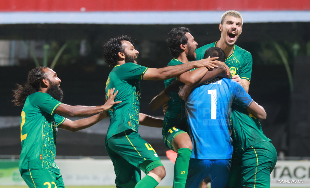 ޕްރެޒިޑެންޓްސް ކަޕް ސެމީ ފައިނަލް، ނިއު މާޒިޔާ ބައްދަލުކުރި މެޗް. ފުރިހަމަ ވަގުތު ހަމަވިއިރު، 2-2 އިން އެއްވަރުވި މި މެޗު ޕެނަލްޓީ ޖަހައިގެން މާޒިޔާ ކާމިޔާބުކުރީ 6-5 އިން. / ފޮޓޯ: މުޙައްމަދު ވަޙީދު، ޕީއެސްއެމް ނިއުސް