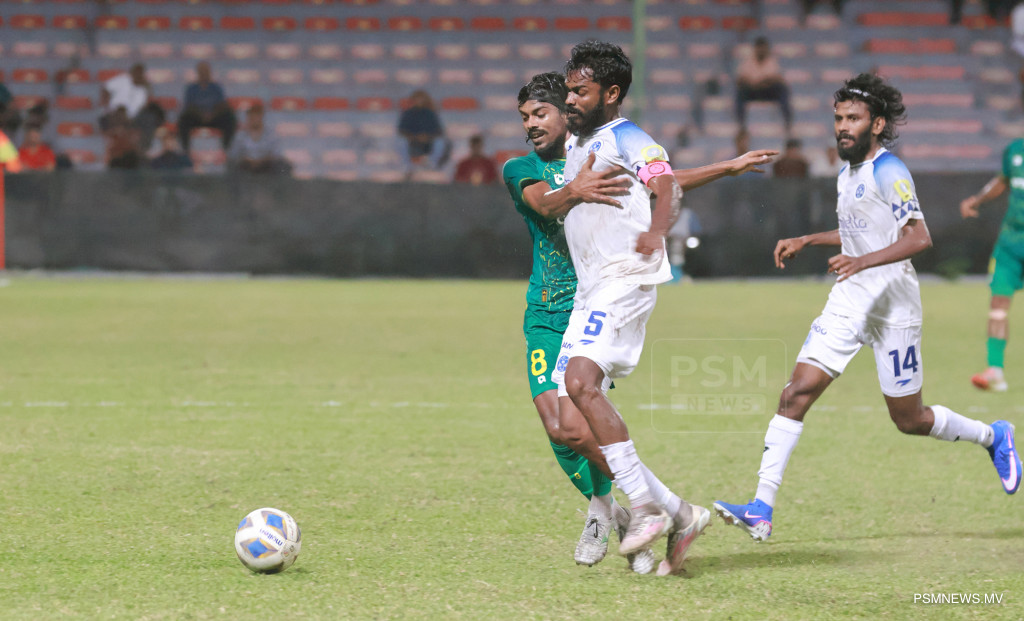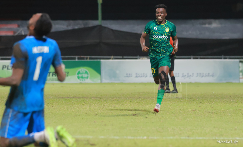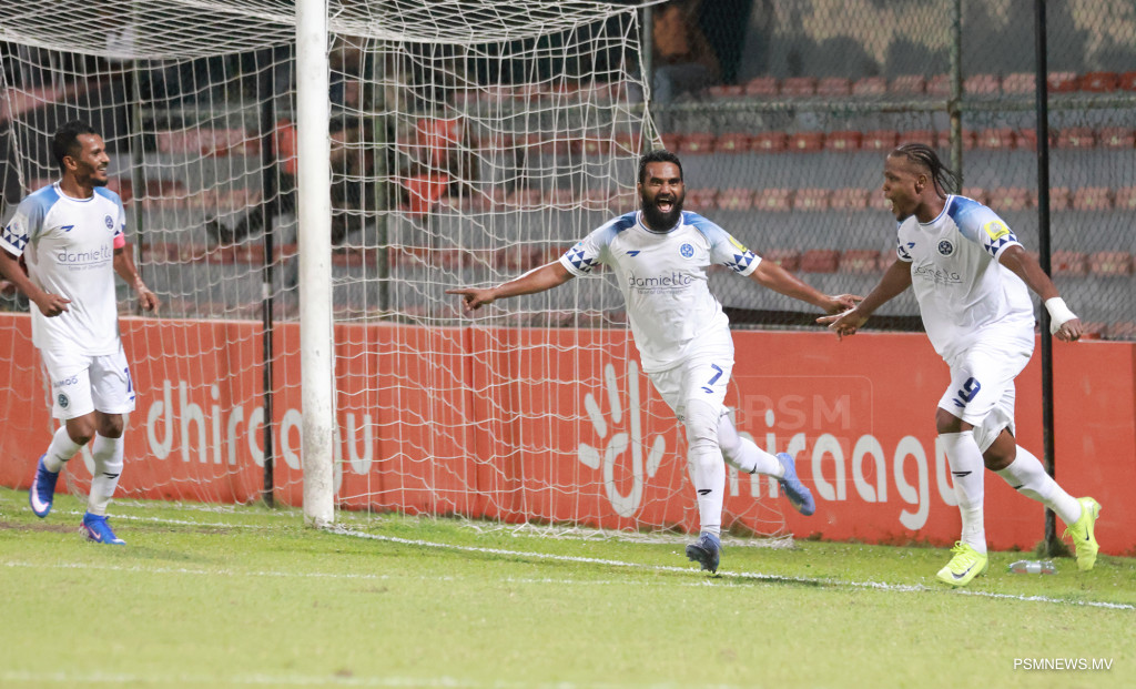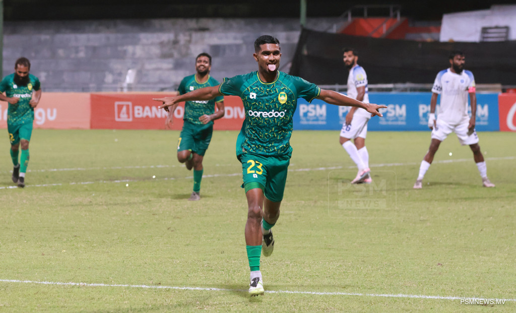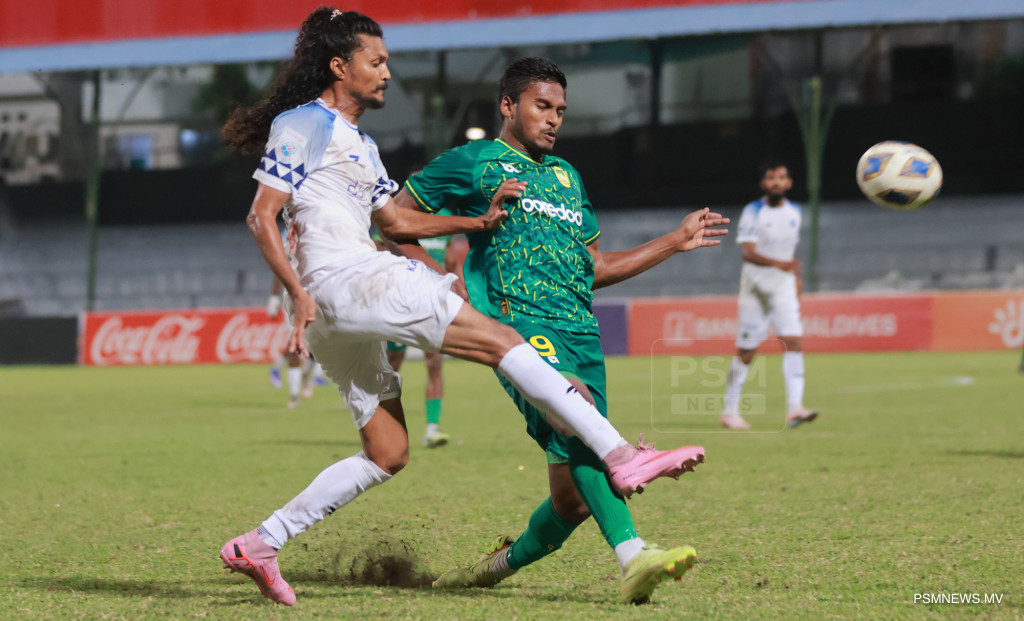 ޕްރެޒިޑެންޓްސް ކަޕް ސެމީ ފައިނަލް، ނިއު މާޒިޔާ ބައްދަލުކުރި މެޗް. ފުރިހަމަ ވަގުތު ހަމަވިއިރު، 2-2 އިން އެއްވަރުވި މި މެޗު ޕެނަލްޓީ ޖަހައިގެން މާޒިޔާ ކާމިޔާބުކުރީ 6-5 އިން. / ފޮޓޯ: މުޙައްމަދު ވަޙީދު، ޕީއެސްއެމް ނިއުސް