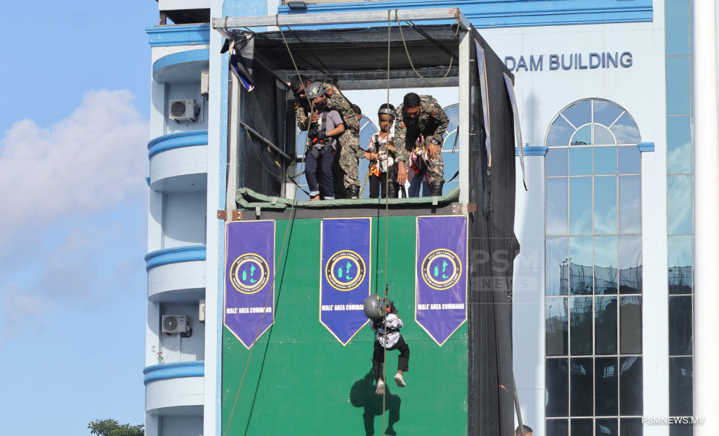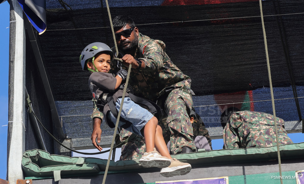 ޤައުމީ ދިފާޢީ ބާރުގެ އިސްނެގުމަށް ސަރުކާރު ޙިއްސާވާ ކުންފުނިތަކާއި މުޢައްސަސާތައް ހިމެނޭ ގޮތަށް 12 ފަރާތެއްގެ ބައިވެރިވުމާއެކު ސަލްޓަން ޕާކާއި ޖުމްހޫރީ މައިދާނުގައި ބޭއްވި ކުޑަކުދިންގެ ހަވީރަށް ވަރަށް ބޮޑު ތަރުޙީބެއް ލިބުނު. / ފޮޓޯ: މުޙައްމަދު ވަޙީދު، ޕީއެސްއެމް ނިއުސް