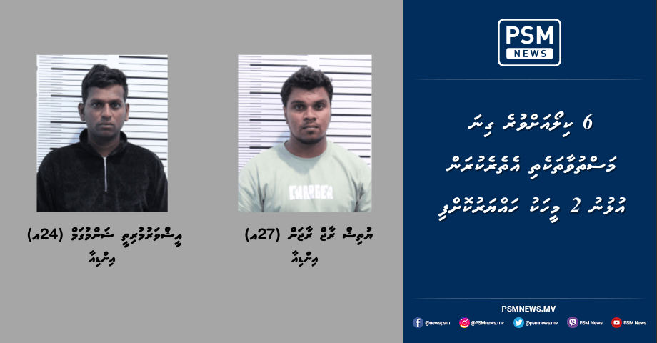 މި މަހުގެ 20 ވަނަ ދުވަހު ހައްޔަރުކުރި މި ދެމީހުންނަކީ ހަ ކިލޯ އަށްވުރެ ގިނަ މަސްތުވާތަކެތި ރާއްޖެ އެތެރެކުރިކަމުގެ ތުހުމަތުގައި މޯލްޑިވްސް ކަސްޓަމްސް ސަރވިސްއިން ފުލުހުންނާ ހަވާލުކުރި ދެ މީހުން ކަމަށް ފުލުހުން ވިދާޅުވިއެވެ.