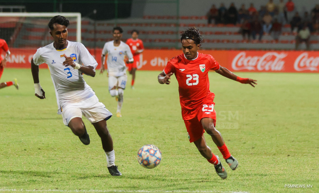 ދިވެހިރާއްޖެ އާއި ސްރީލަންކާ ބައްދަލުރި މެޗްގެ ތެރެއިން / ފޮޓޯ: މުޙައްމަދު ވަޙީދު، ޕީއެސްއެމް ނިއުސް