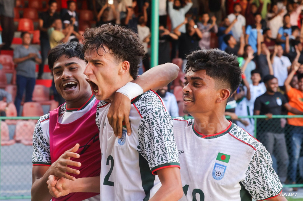 20 އަހަރުން ދަށުގެ ސާފް ޗެމްޕިއަންޝިޕްގެ ގްރޫޕް ބީގެ ފުރަތަމަ މެޗު ކާމިޔާބުކޮށް ބަންގްލަދޭޝްއިން ދެވަނަ ބުރުގެ ޖާގައަކާއި ގާތަށް ޖެހިލައިފިއެވެ.